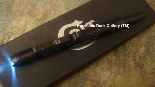 NFL CT-437, (All photos are the property of Hurricane Deck Cutlery). Brand New Colt Tactical Pen w/integrated LED Light. Ball Point Pen. BLACK. Pull-off cap. Overall length 6.5" (16.51 cm) -- measurement not exact. Features a pointed end that can be used as a Glass Breaker as well as sharp crown that can both be used for sef-defense. Made of aircraft aluminum. Features a WHITE LED light that can be used for task lighting, finding your way in the dark or finding items in dark places such as packs and